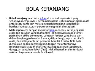 Sejarah bola keranjang di malaysia Seperti kebanyakkan permainan bola keranjang juga adalah satu lagi sukan yang di bawa masuk dari negara luar ke negara kita. Sekiranya jaringan dilakukan dari luar garisan tersebut adalah jaringan dari jauh dan 3 mata akan diberikan kepada pasukan. Wednesday January 11 2017.