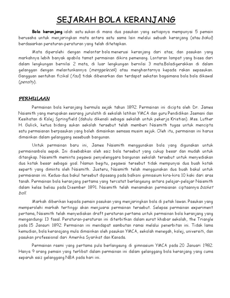 Sejarah Bola Keranjang Di Malaysia Pdf